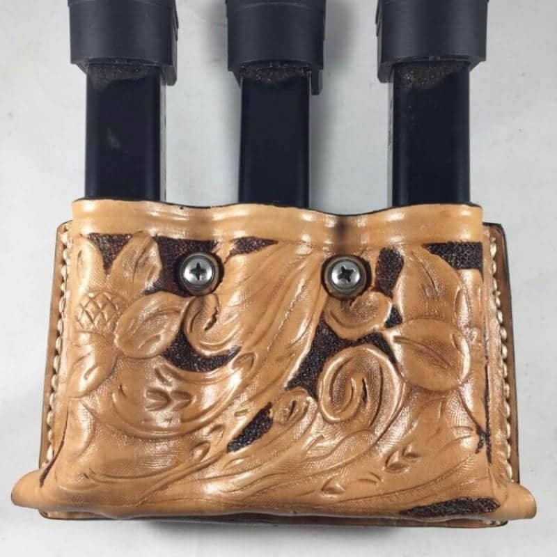 BH60T Triple Mag Pouch with Two Tension Screws shown in a hand carved design.