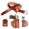 This belt is lined and designed to be heavy enough to carry a pistol comfortably and securely. Premium cowhide lining adds strength to the belt without the added bulk of a heavy gunbelt. A beautiful belt for dress even without a holster. 1 1/2 Belt Leather Lined and a big trim skin on each end of belt ,Nickle Buckle or Brass Set Standard.