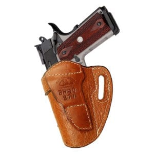 * This holster is provided with a leather covered metal reinforced holster mouth