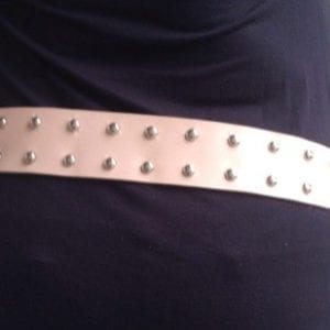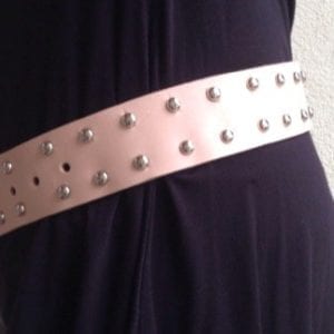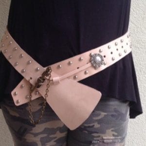 Handmade, one of a kind belt accessory. Genuine leather with hand beading. Distinctive belt design, perfect for any occasion. Worn on the hip.