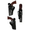 This thumb break high-ride duty holster rides close to the body. It comes with a double retention, 1 thumb break, and 2 retention screws on the slide. Fully smooth leather lined. This holster is designed to fit most semi-auto handguns.