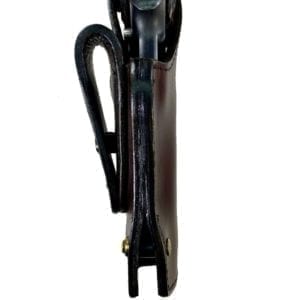 This thumb break high-ride duty holster rides close to the body. It comes with a double retention, 1 thumb break, and 2 retention screws on the slide. Fully smooth leather lined. This Police Duty Holster Level II is designed to fit most semi-auto handguns. This holster is designed for Law Enforcement Agencies.